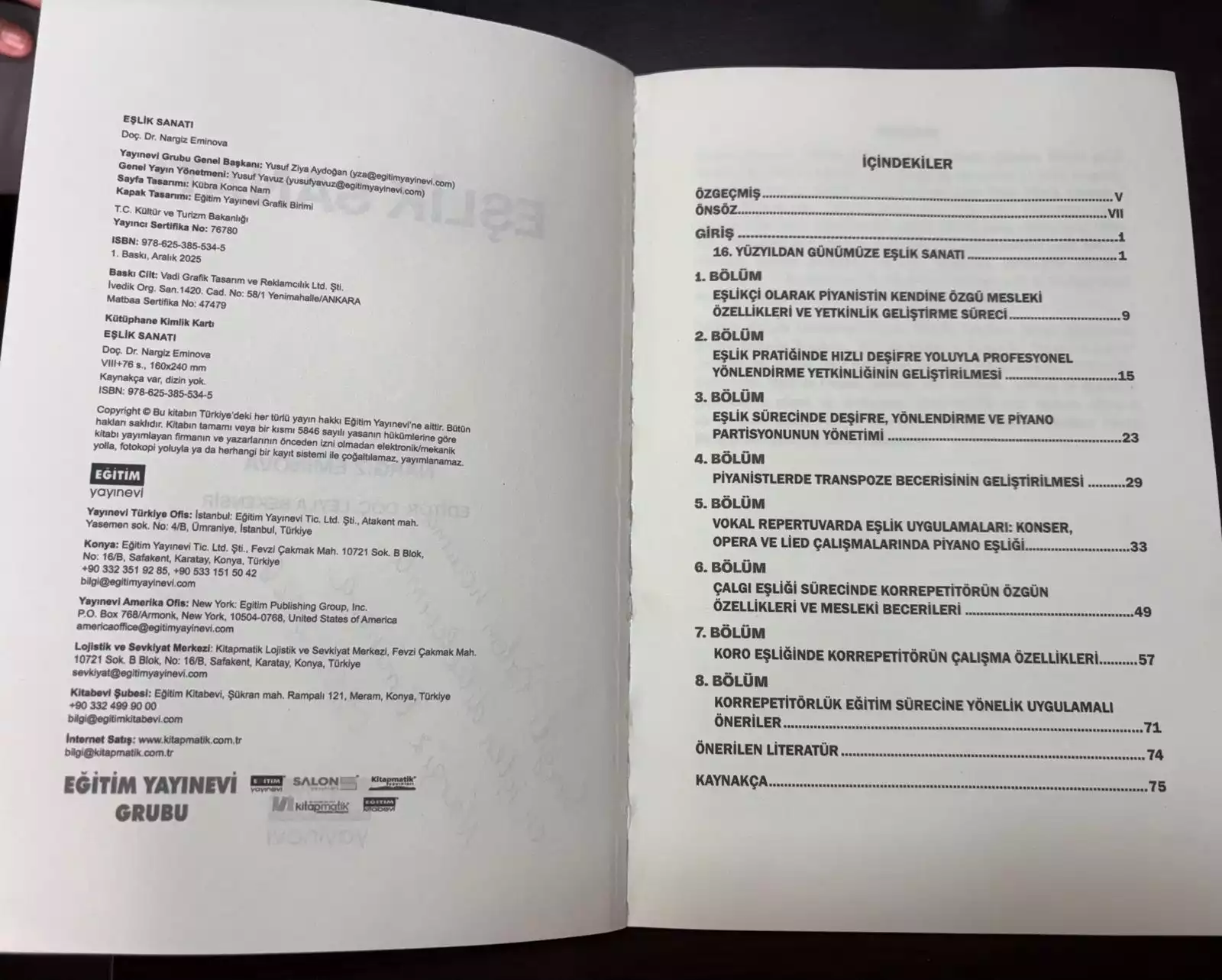 Müzik Bölümü öğretim üyemiz Doç. Dr. Nargiz EMİNOVA’nın Eşlik Sanatı isimli kitabı uluslararası statüde bir yayınevi olan Eğitim Yayınevi tarafından yayınlanmıştır.